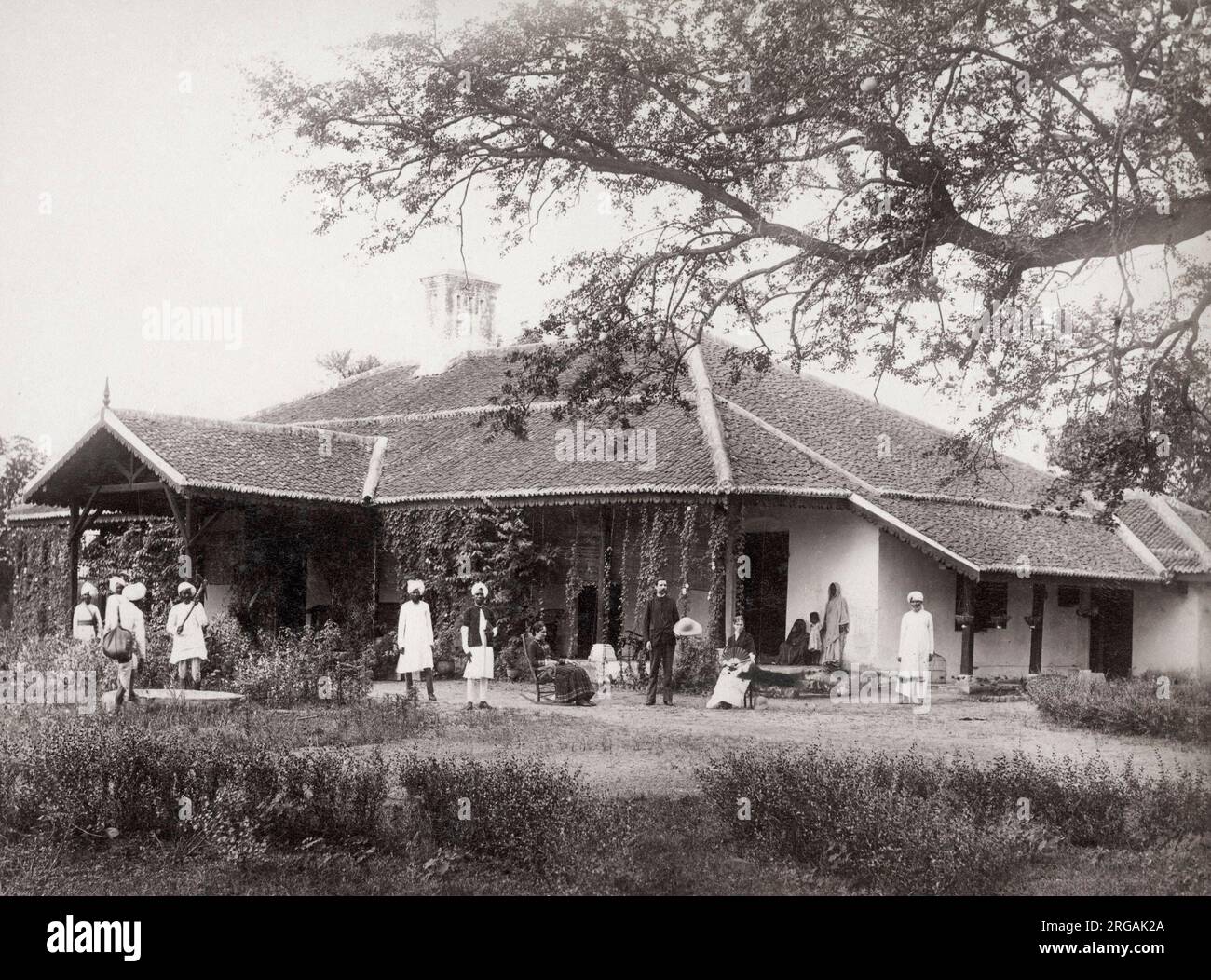vintage-19th-century-photograph-british-christian-missionary-couple-mission-bungalow-with-group-of-servants-india-c1880s-2RGAK2A.jpg
